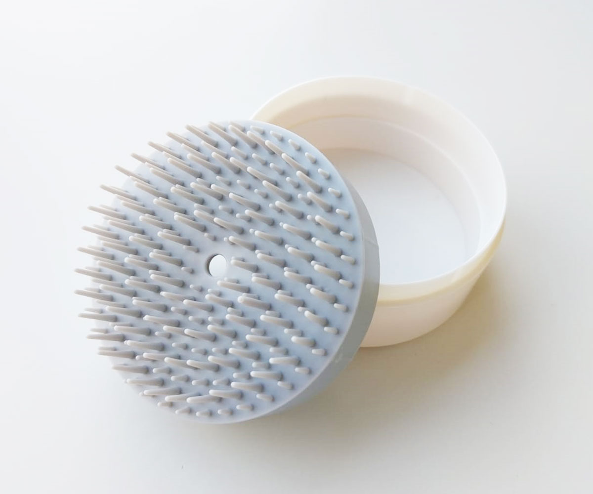 Brosse de massage pour le cuir chevelu, permettant d’exfolier le cuir chevelu en douceur.