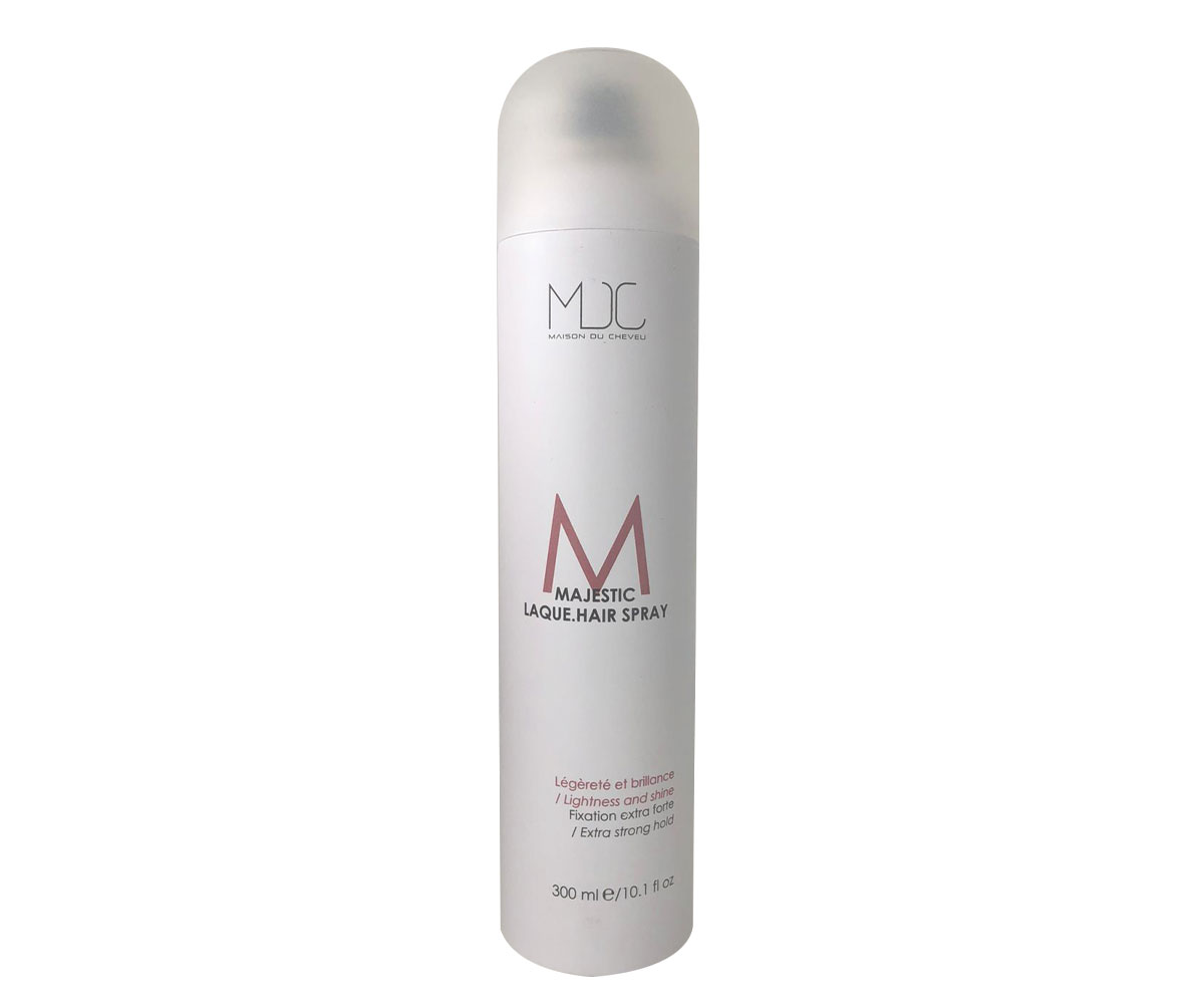 Découvrez la laque MAJESTIC de MDC, légère et antistatique, formulée avec un spray écologique sans gaz pour préserver l’environnement. Sa formule offre un haut pouvoir fixant tout en protégeant vos cheveux des agents atmosphériques. Conçue pour apporter brillance et tenue longue durée, notre laque ne mouille pas, ne laisse pas de traces résiduelles et s’élimine facilement en quelques coups de brosse. Offrez à vos cheveux une fixation naturelle et un fini impeccable avec notre laque MAJESTIC.